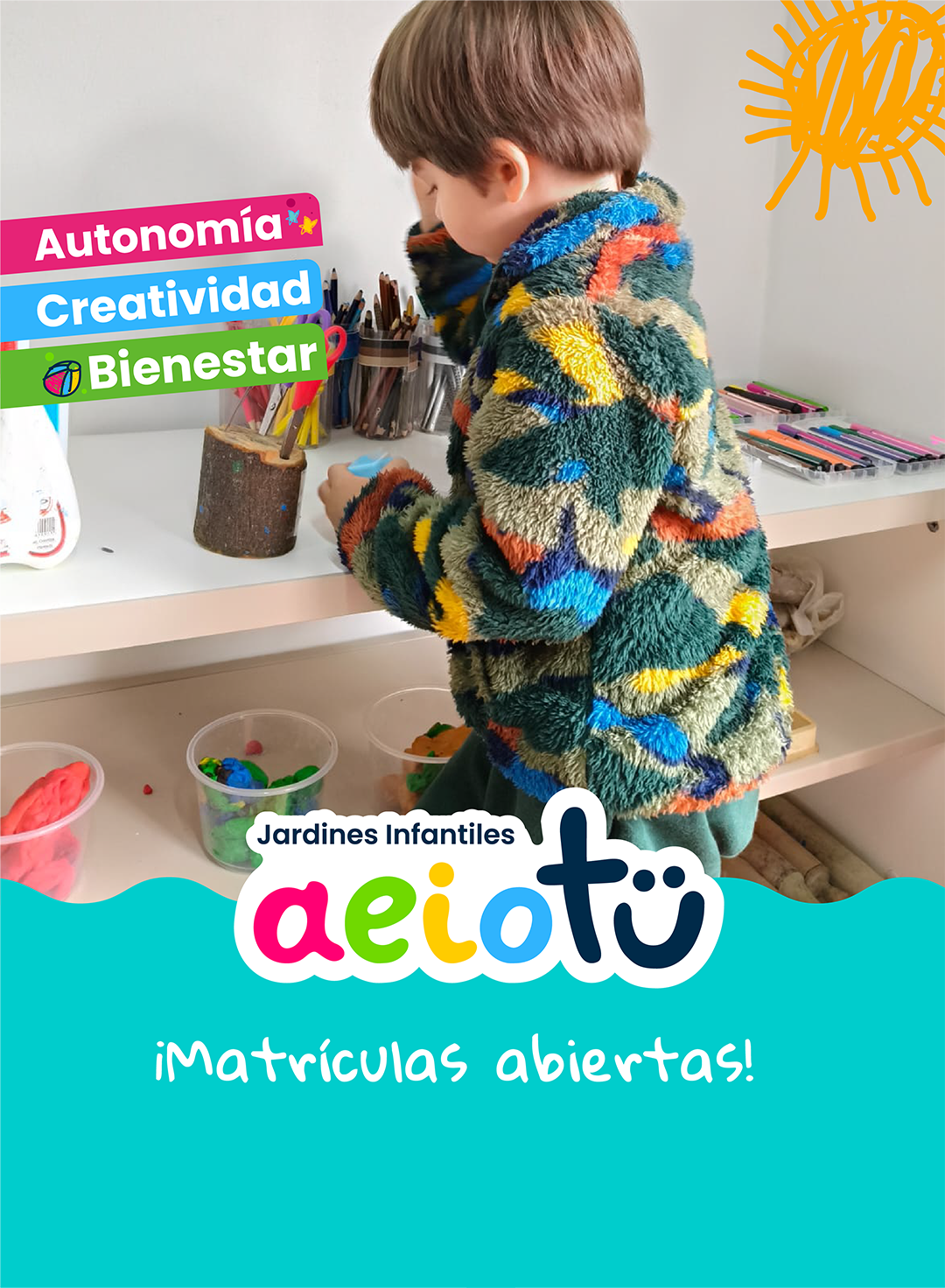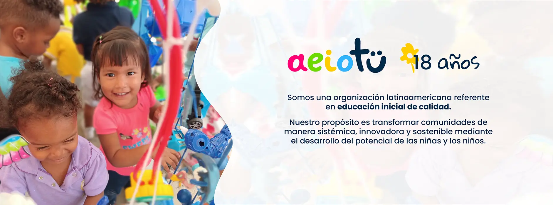 Transformamos comunidades a través de nuestro propio Modelo Educativo para educación de Primera Infancia, llamado Experiencia Educativa aeioTU, el cual está inspirado en la filosofía educativa Reggio Emilia. Por medio de este programa pedagógico y su currículo, los niños y las niñas aprenden mediante el juego, el arte, la exploración y la investigación, además, protagonizan el aprendizaje a partir de sus propios intereses.